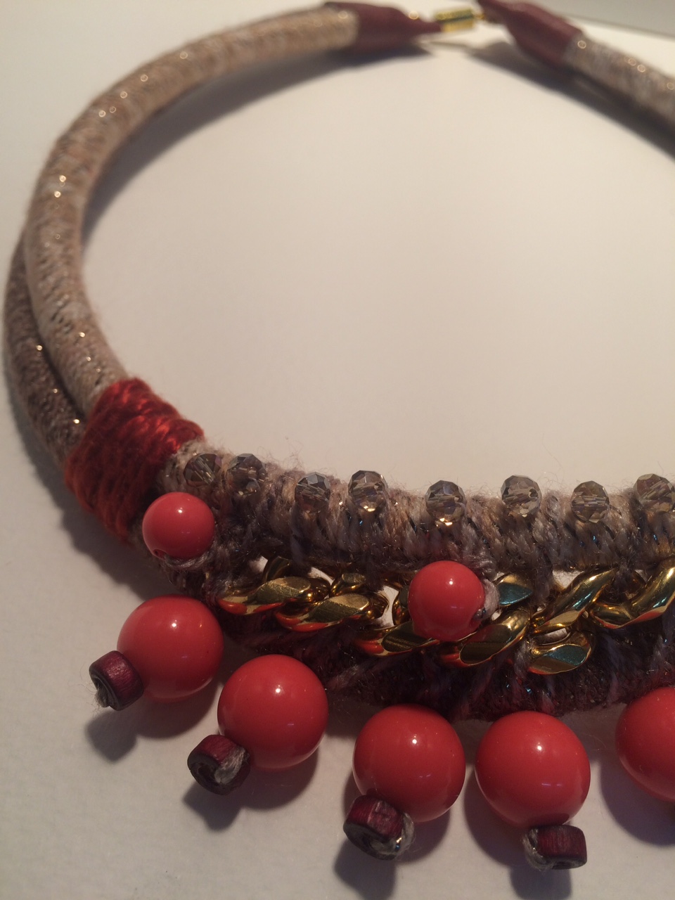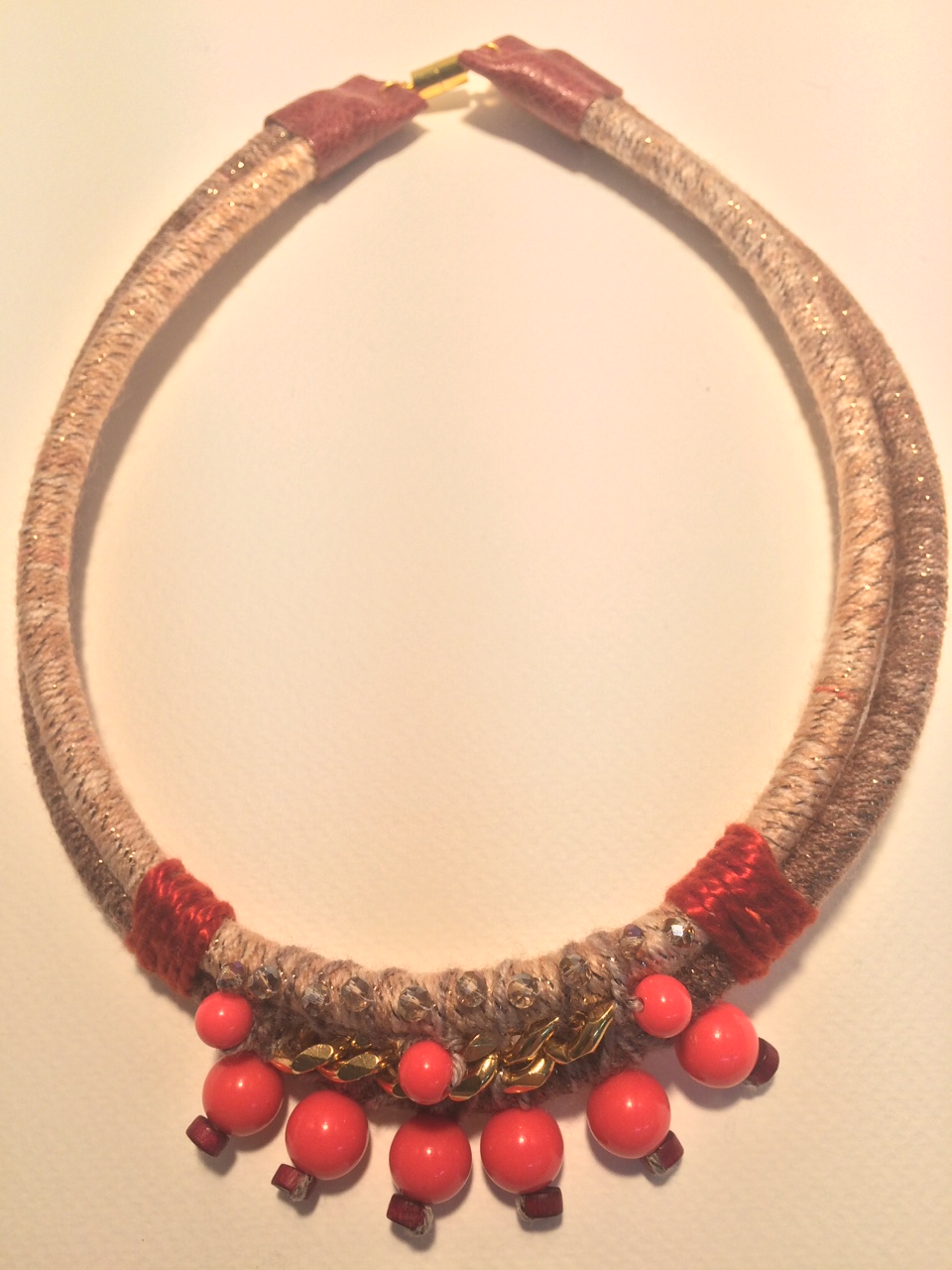 A true statement piece, this magnificent fiber-wrapped collar oozes glamour and sophistication.