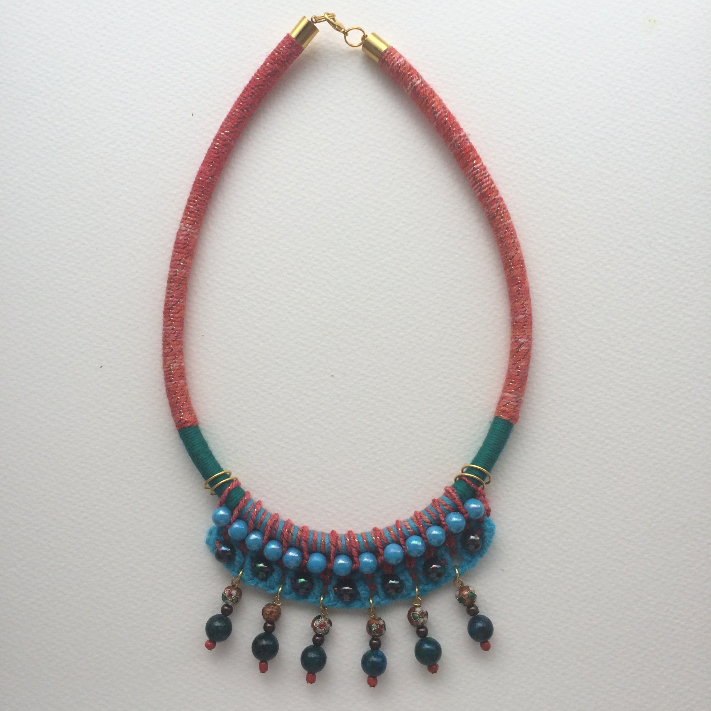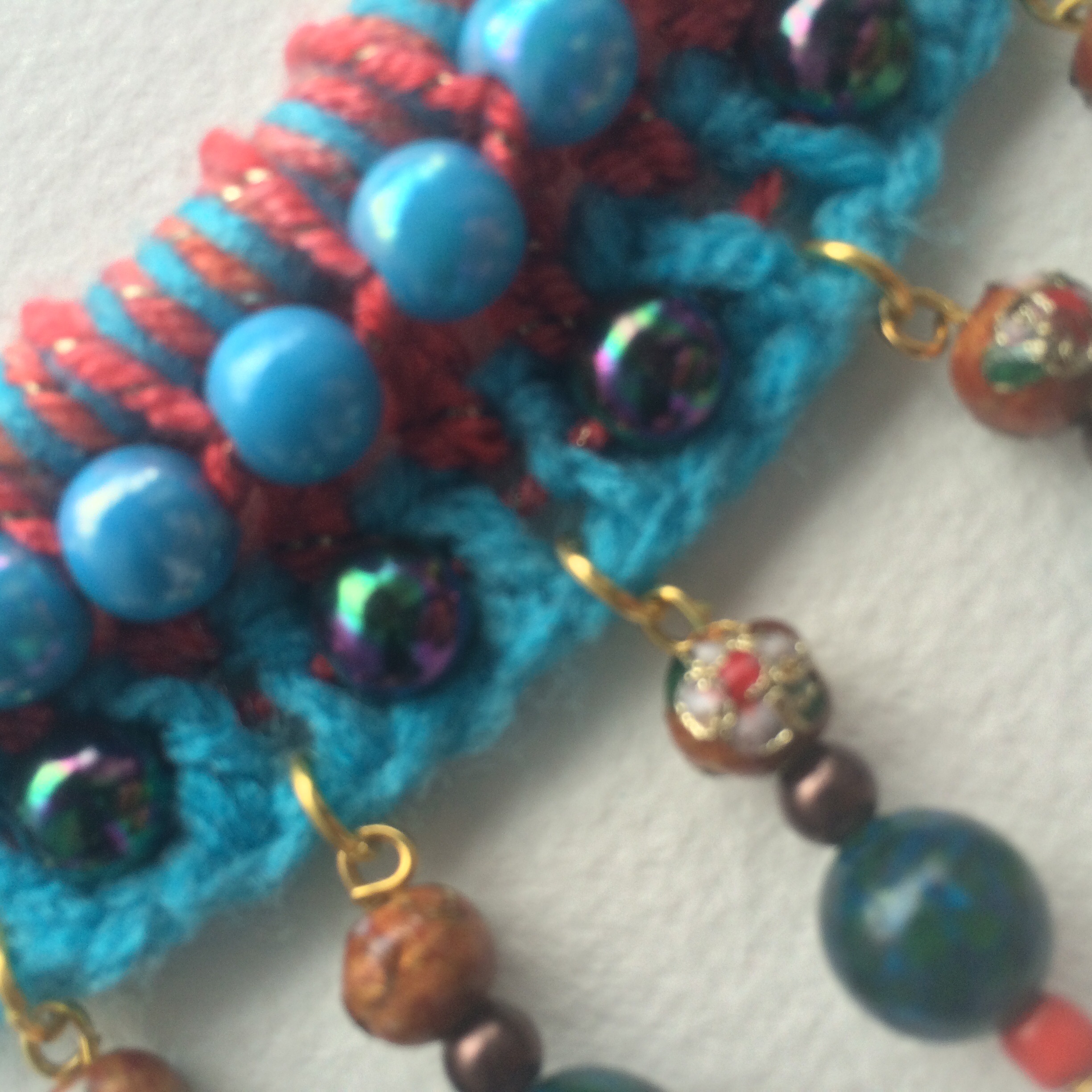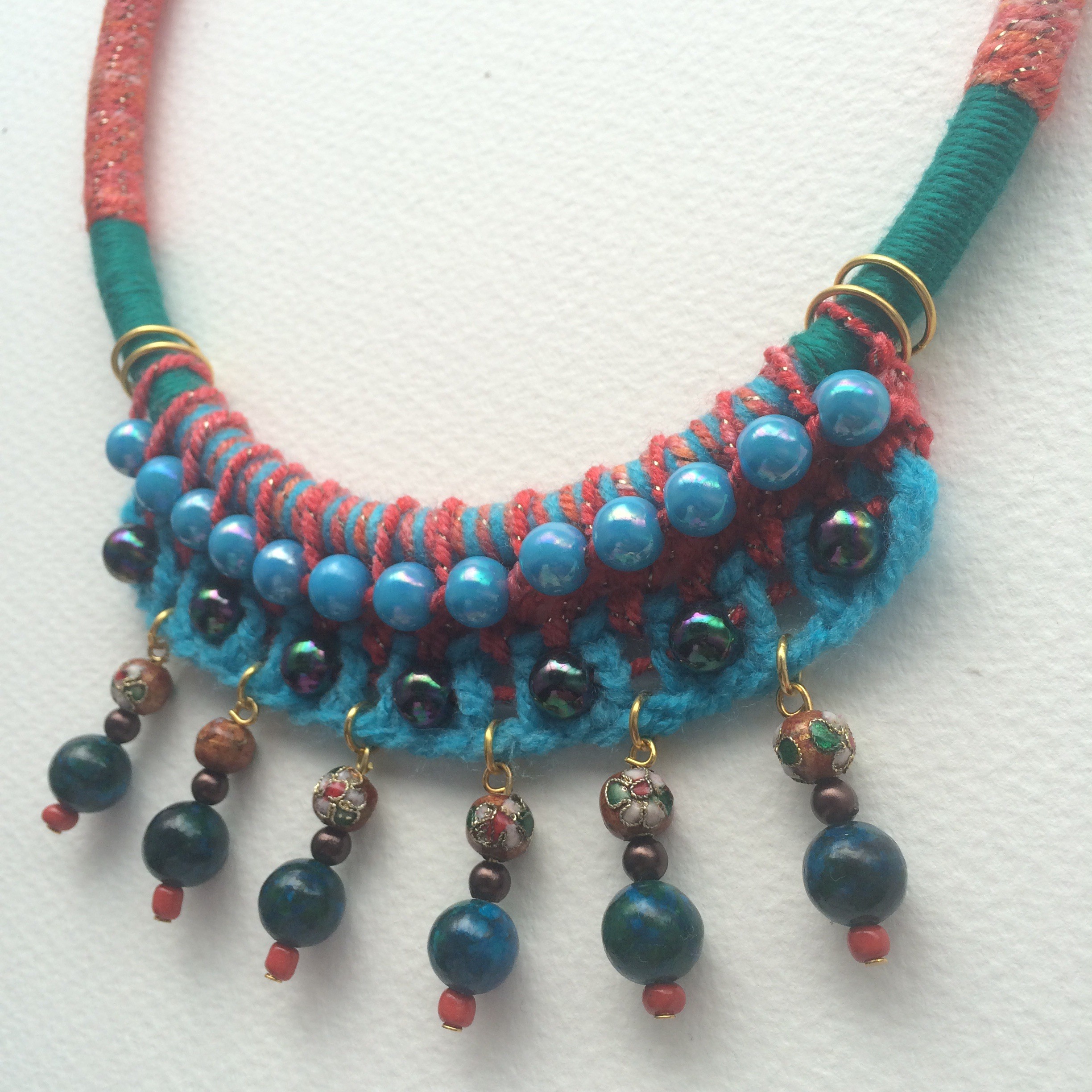 •Materials: wool, cotton, acrylic, glazed metal beads, beads, cord, metal