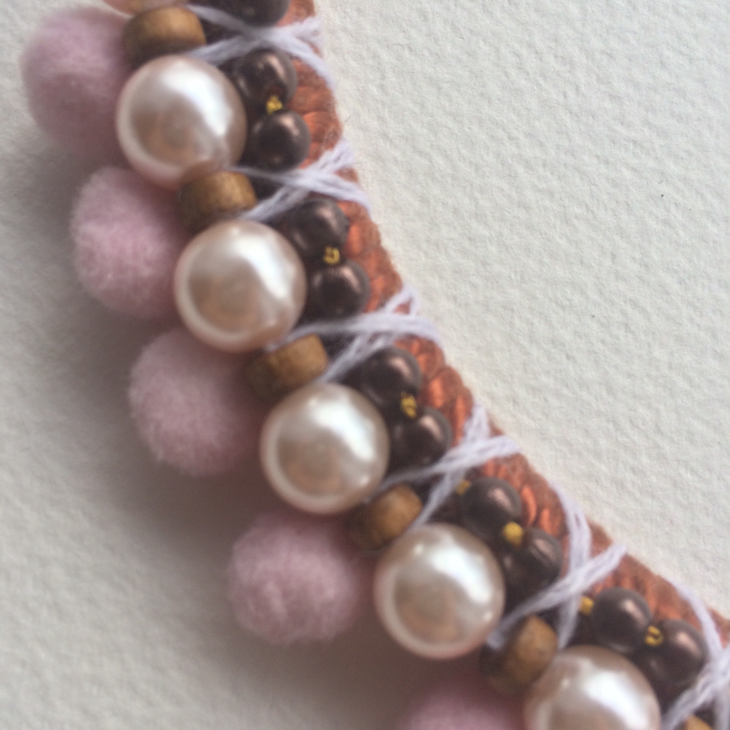 It shines in dark pink pearl  and comes on a wooll-wrapped  collar base .