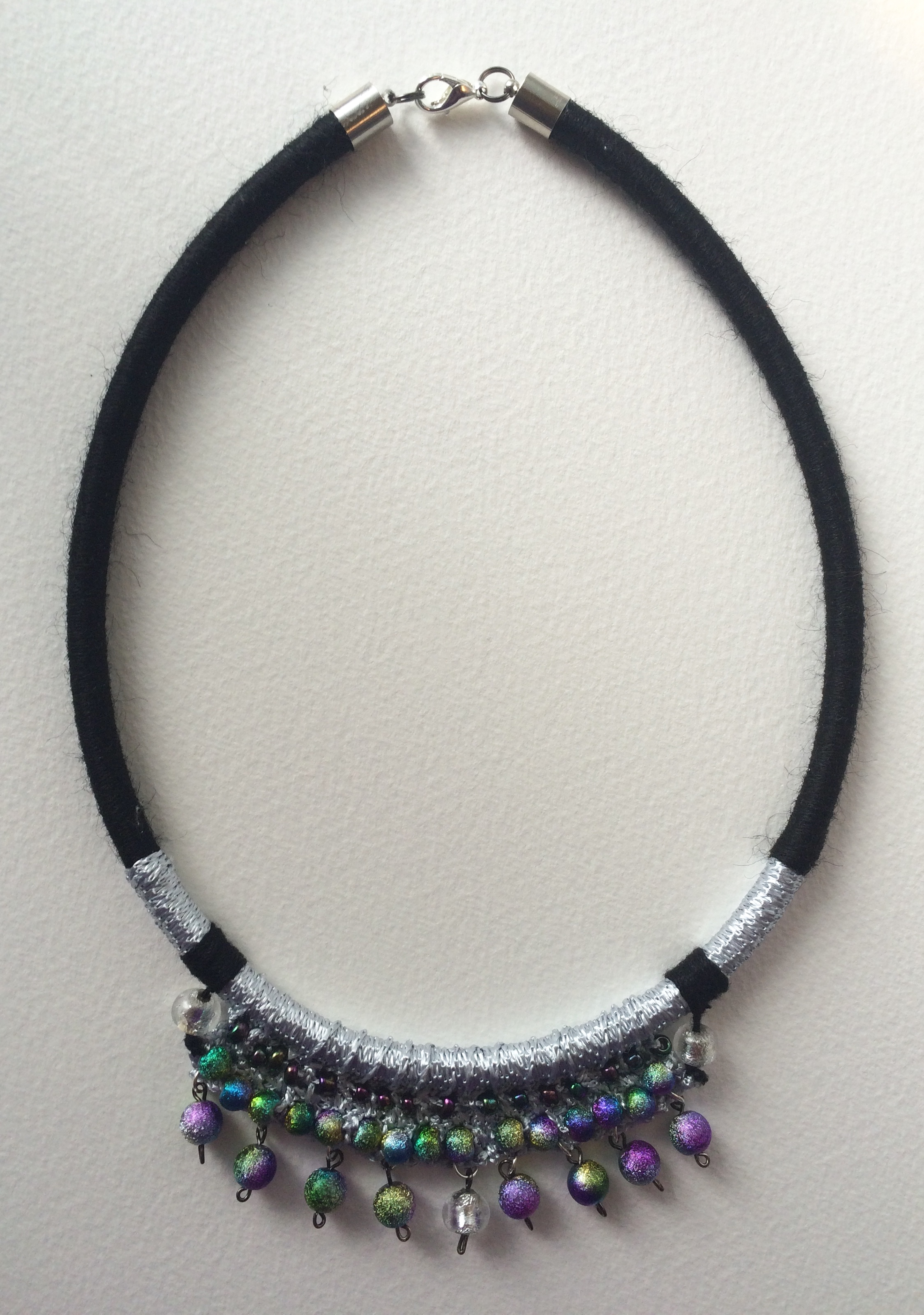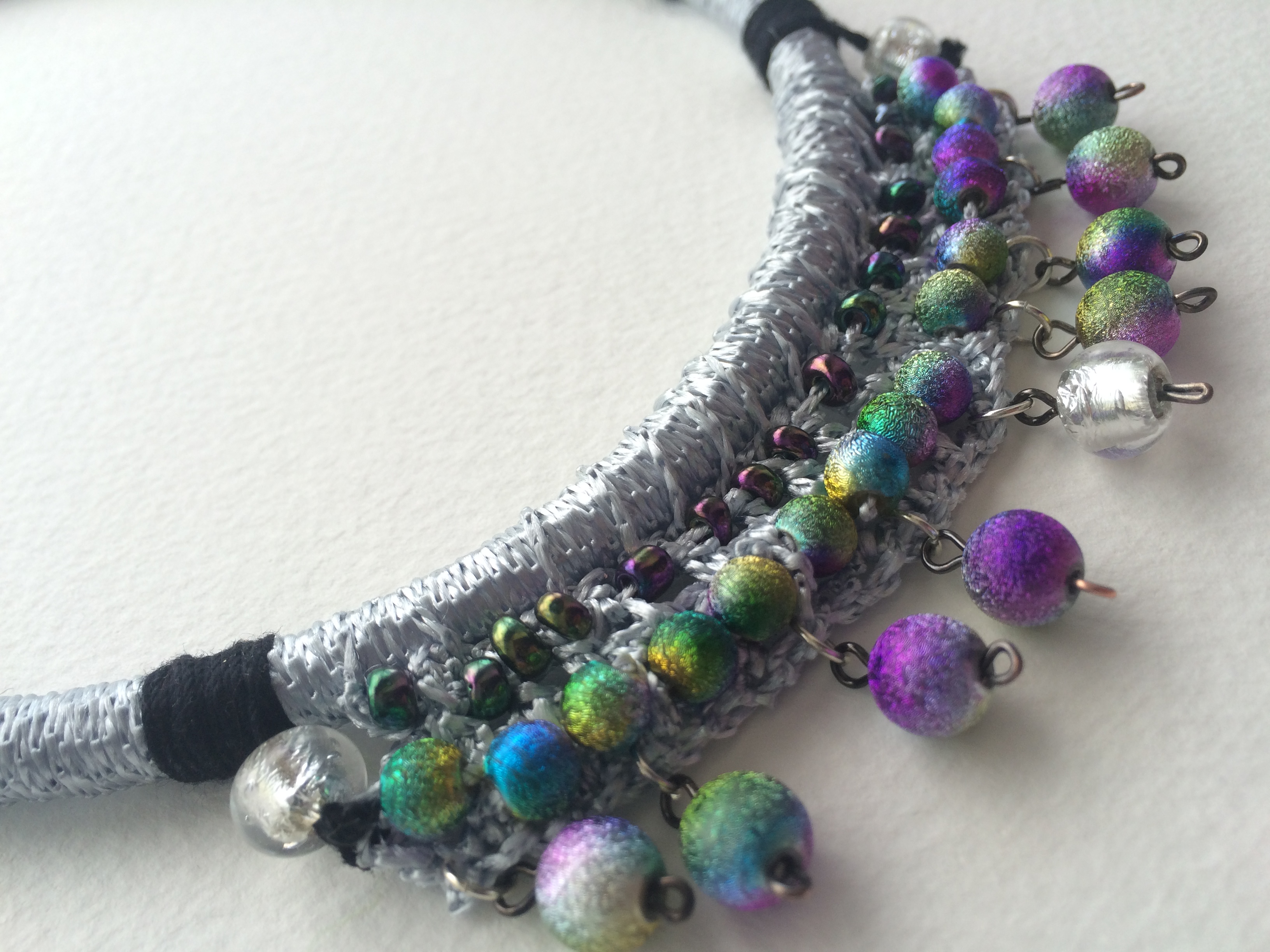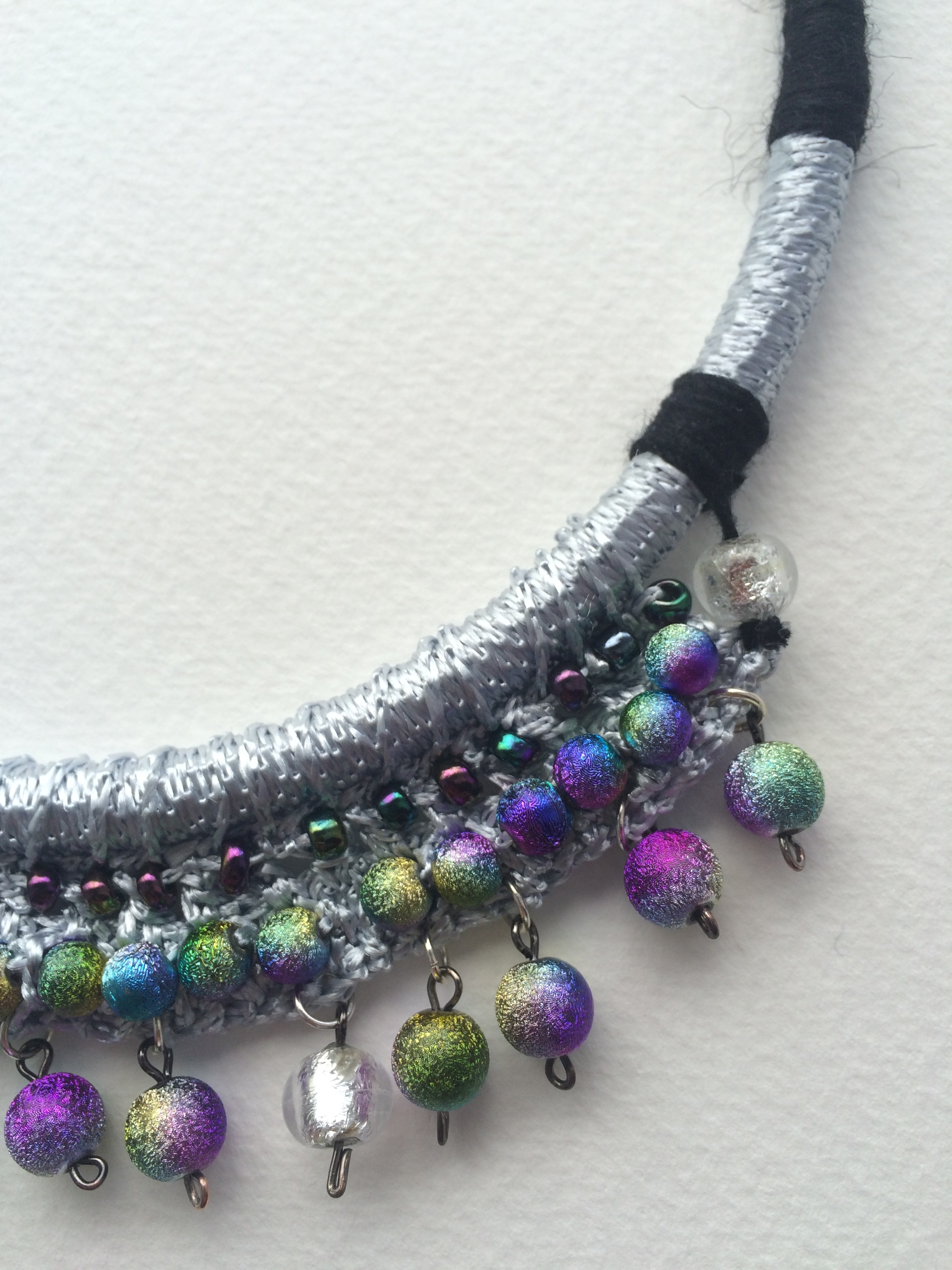 •Materials: wool, acrylic, silver foil glass beads, cord, metal beads, acrylic beads