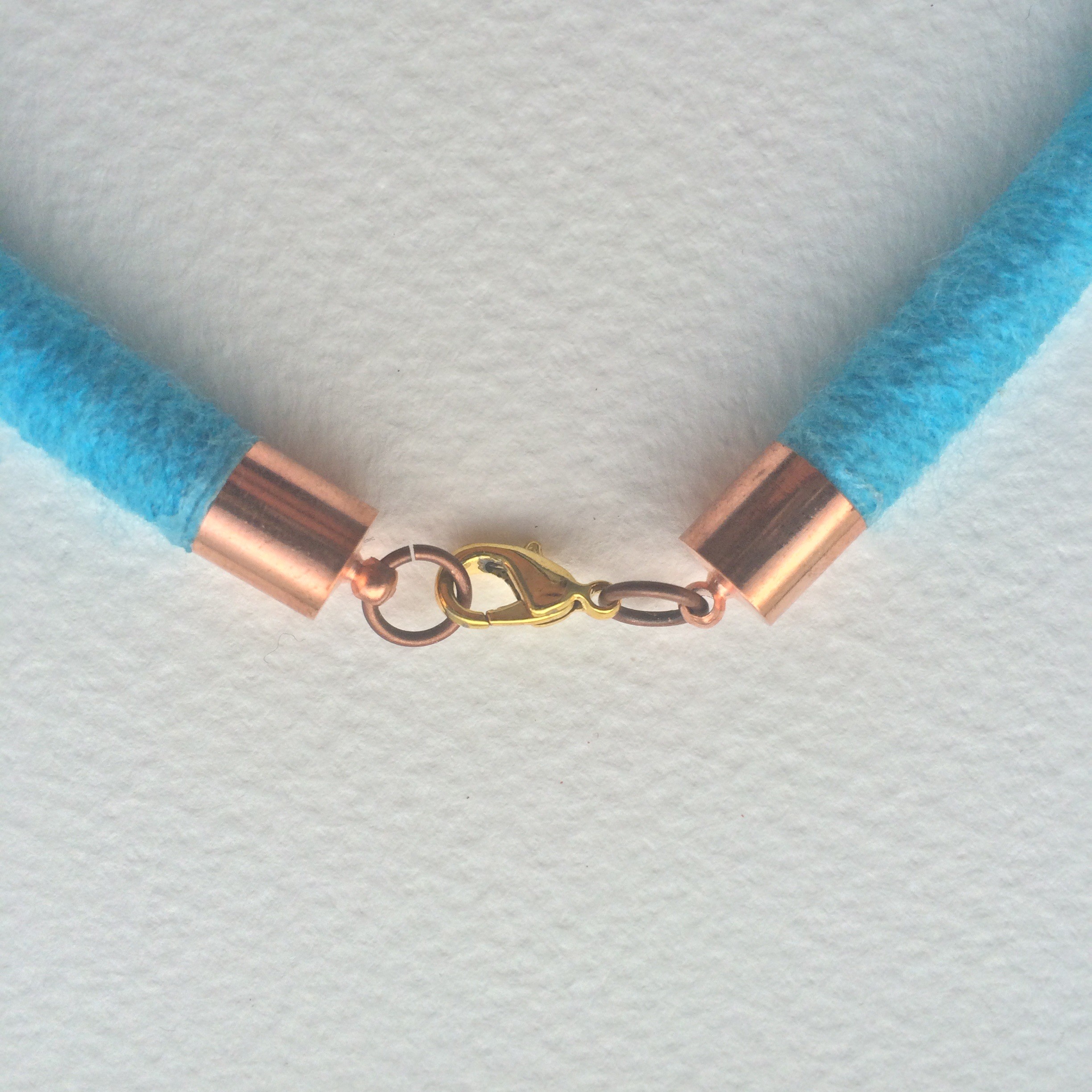 It consists of one large glass and eght wooden Sky Blue  beads on the Line of textile , both adorned with light  shine crystals .
